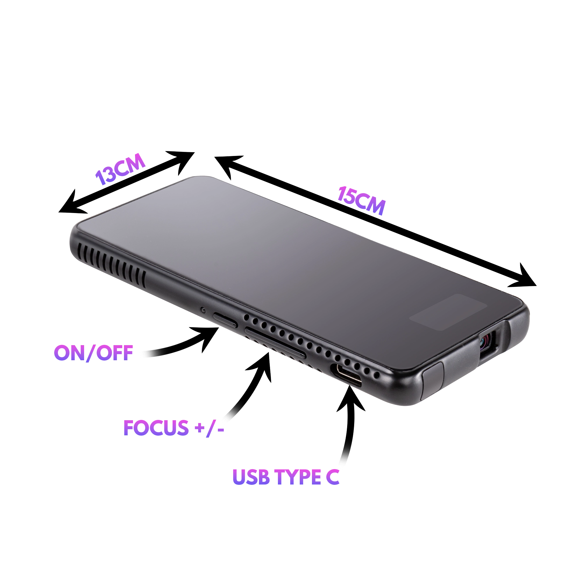 Le Mini Vidéoprojecteur Black Card HD se distingue par ses fonctionnalités avancées : connectivité Wifi et Bluetooth pour une diffusion sans fil, focus électrique pour une image nette en toute situation, port USB Type-C pour une recharge rapide et des transferts de données efficaces, ainsi que des applications intégrées et des haut-parleurs qui transforment chaque projection en une expérience cinématographique.